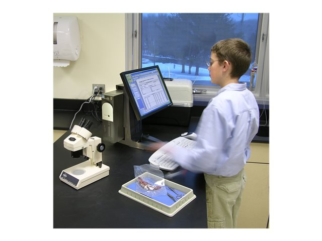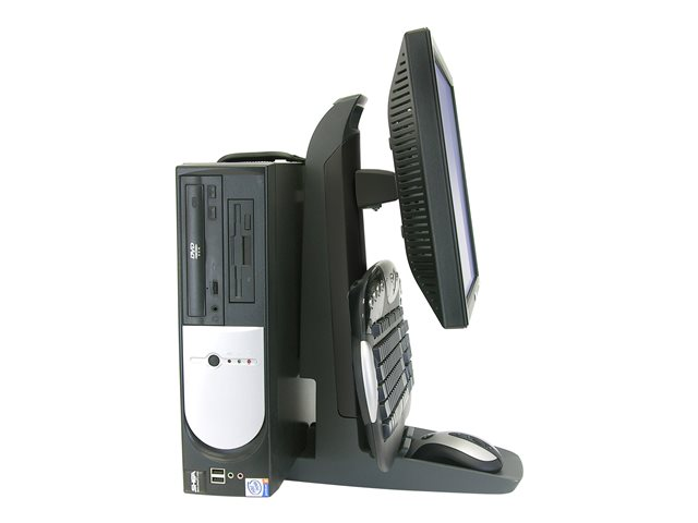 Ce support unique tout-en-un apporte une adaptabilité ergonomique, une liberté de mouvement et économise l'espace. Il est parfait pour les espaces restreints et supporte à la fois l'unité centrale et l'écran, tout en vous permettant d'ajuster la hauteur de l'écran sans effort.