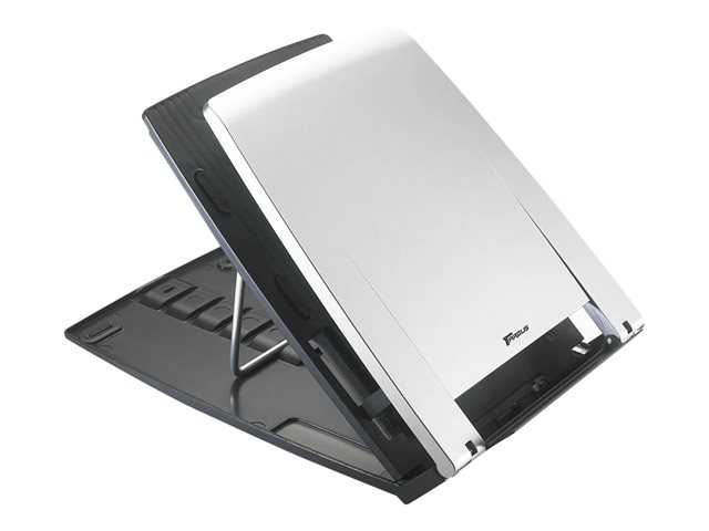 L'Ergo M-Pro Notebook Stand est un socle pour ordinateurs portables compact et léger. Il offre plusieurs angles d'inclinaison, vous permettant ainsi de mettre votre ordinateur en position verticale. De plus, il vous permet de positionner l'écran LCD de votre ordinateur plus haut par rapport au niveau de votre regard. L'Ergo M-Pro Notebook Stand est également pourvu d'un porte-document placé juste en face de l'utilisateur. Lorsque vous ne l'utilisez pas, vous pouvez pliez le l'Ergo M-Pro Notebook Stand afin d'obenir un produit relativement plat que vous pourrez ranger aisément lors de séjours prolongés hors de votre bureau ou emmener avec vous dans le cadre de vos déplacements.