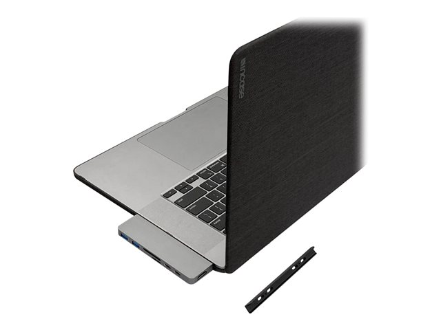 Hub USB-C de forme adaptée avec HDMI 4K 60Hz et poignée magnétique pour MacBook Pro et MacBook Air. Cette station d'accueil USB-C se fixe en toute sécurité au MacBook en ajoutant 7 ports : Sortie HDMI 4K 60Hz, USB-C PD, compatible Thunderbolt 3, et plus encore.