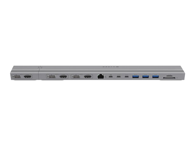 Profitez de 15 ports essentielsExploitez la connectivité de votre Macbook 13"-16" avec 15 ports, dont HDMI 4K 60Hz x 3, DP 4K, 60Hz x 3, emplacements MicroSD/SD, Ethernet 1Gb, USB-C 10Gbps x 2, USB-C PD 100W, USB-A 10Gbps, et USB-A 5Gbps x 2.