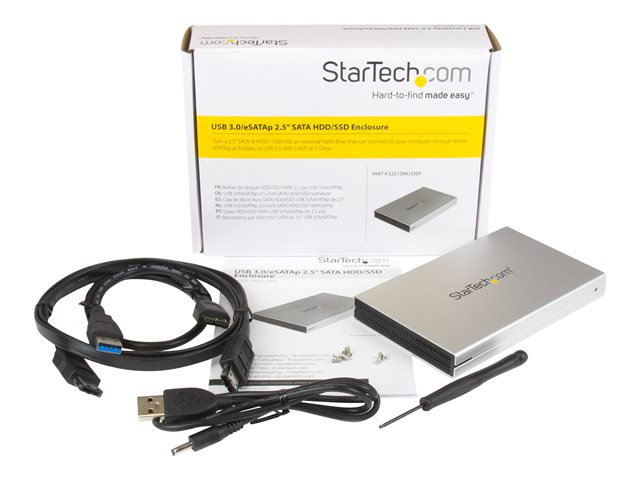 Le boîtier de disque dur USB 3.0/eSATAp S251SMU33EP permet de transformer un disque dur (HDD) SATA 2,5 pouces ou disque SSD en un disque dur portable externe, pouvant être connecté à tout système informatique USB ou eSATA.