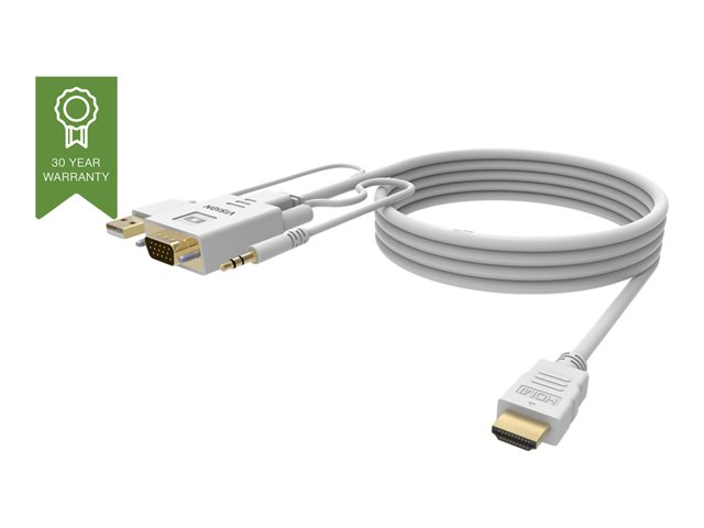 Description du produit VISION Techconnect - câble vidéo/audio - HDMI / VGA / audio / USB - 2 m Câble Câble vidéo/audio - HDMI / VGA / audio / USB Calibrage américain normalisé des fils (AWG) 28 Longueur 2 m Couleur Noir Connecteurs Mini jack stéréo - mâle