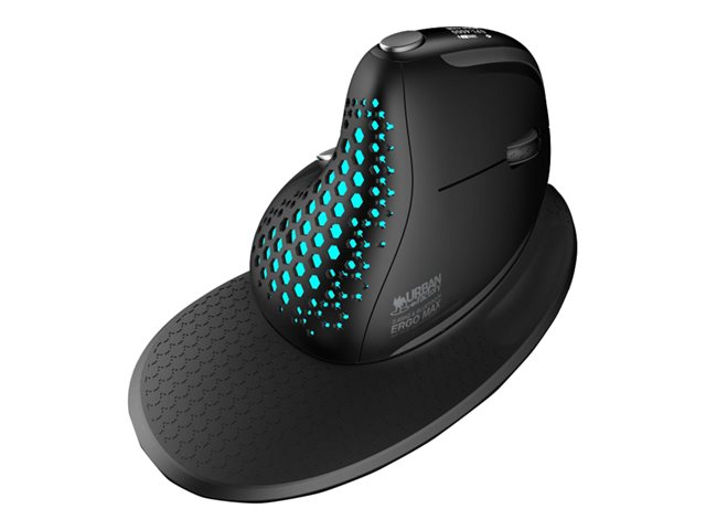 ERGO MAX est une souris ergonomique verticale sans fil 2.4GHz / Bluetooth 5.0 et filaire USB-A multi-appairable. L'ERGO MAX a été conçue pour éviter les torsions du bras et du poignet et donc soulager l'utilisateur lors d'un usage prolongé de la souris. La résolution du capteur se règle de 800 à 4000 DPI sur le dessus de la souris. C'est une souris à 7 boutons rechargeable grâce à son port USB-C et sa batterie intégrée de 1000 mAh qui vous offrira plusieurs jours d'autonomie. Son écran OLED de contrôle et sa molette à défilement horizontale vous apporteront un confort de travail optimal.