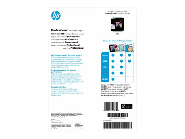 Imprimez vos projets et donnez-leur une apparence professionnelle recto et verso. Le papier professionnel HP Business, finition mate, est certifié FSC et permet d'obtenir des textes noirs nets et des graphiques aux couleurs vives sur les brochures, les dépliants et les documents marketing.