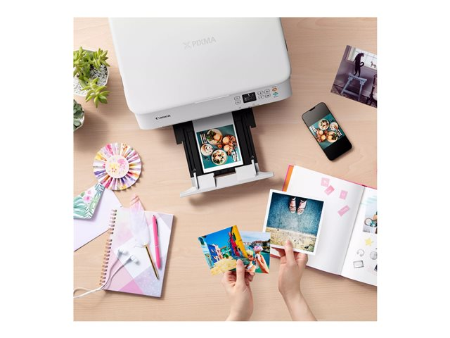 Cette imprimante multifonction élégante est optimisée pour les utilisateurs de smartphones. Libérez votre créativité avec un large éventail de supports et d'applications. Créez et imprimez des autocollants et des aimants grâce à sa connectivité aisée, son écran OLED simplifié, sa barre d'état à LED et ses cartouches FINE.