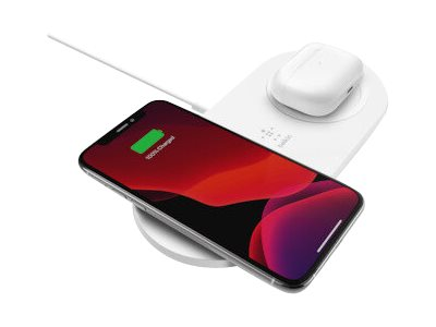 Description du produit Belkin BOOST CHARGE Dual plot de charge sans fil - + adaptateur secteur - 15 Watt Description du produit Belkin BOOST CHARGE Dual plot de charge sans fil - + adaptateur secteur - 15 Watt Type de Produit Plot de charge sans fil + adaptateur secteur Type de Produit Plot de charge sans fil + adaptateur secteur Couleur Blanc Couleur Blanc Normes de recharge sans fil Qi Normes de recharge sans fil Qi Alimentation fournie 15 Watt Alimentation fournie 15 Watt Garantie du fabricant Garantie de 2 ans Garantie du fabricant Garantie de 2 ans Conçu pour Apple iPhone 11, 11 Pro, 11 Pro Max, 8, 8 Plus, X, XR, XS, XS Max; Samsung Galaxy Note10, Note10+, S10, S10+, S10e Conçu pour Apple iPhone 11, 11 Pro, 11 Pro Max, 8, 8 Plus, X, XR, XS, XS Max; Samsung Galaxy Note10, Note10+, S10, S10+, S10e -
