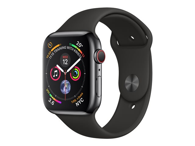 40 mm - boîtier en acier noir inoxydable - montre intelligente avec bande sport - fluoroélastomère - noir - taille de bande 130-200 mm - 16 Go - Wi-Fi, Bluetooth - 4G - 39.8 g