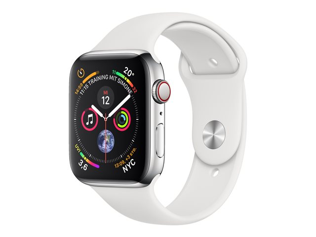 44 mm - acier inoxydable - montre intelligente avec bande sport - fluoroélastomère - blanc - taille de bande 140-210 mm - 16 Go - Wi-Fi, Bluetooth - 4G - 47.9 g