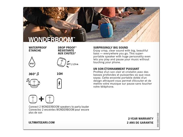Les enceintes Ultimate Ears WONDERBOOM Bluetooth ultra-portables offrent un son étonnamment puissant.