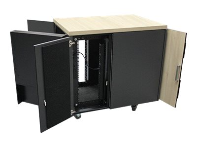 Baies spécialisées avec refroidissement intégré, atténuation du bruit et distribution électrique pour applications serveur et réseau dans des environnements de bureau.