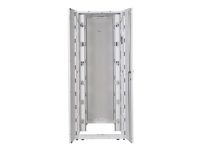 Large baie avec options avancées de gestion des câbles, pour applications serveur et réseau haute densité. Hauteur 42U permettant un passage par les ouvertures de porte.