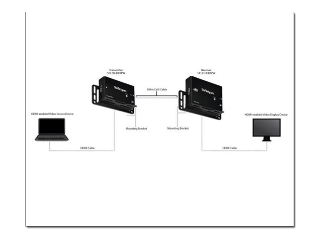 HDMI over CAT5e - HDBaseT Extender - 4K30 - HDMI Video Extender (ST121HDBTPW) - Prolongateur audio/vidéo - plus de CAT 5e/6 - jusqu'à 100 m - pour P/N: ST121HDBTRP, SVA12M2NEUA, SVA12M5NA
