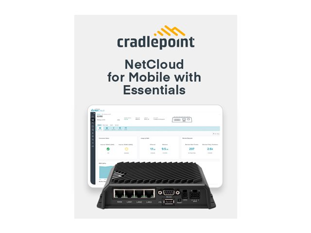 Le service de performance mobile NetCloud de Cradlepoint avec le routeur de la série R1900 est une plateforme réseau 5G durcie, conçue pour fournir une connectivité persistante pour les déploiements dans les véhicules. Cradlepoint NetCloud fournit des services de connectivité, de réseau, de sécurité, de localisation et d'IoT pour connecter tout ce qui se trouve dans le véhicule, tout en fournissant un accès à l'informatique pour la gestion à distance, le dépannage et l'analyse.